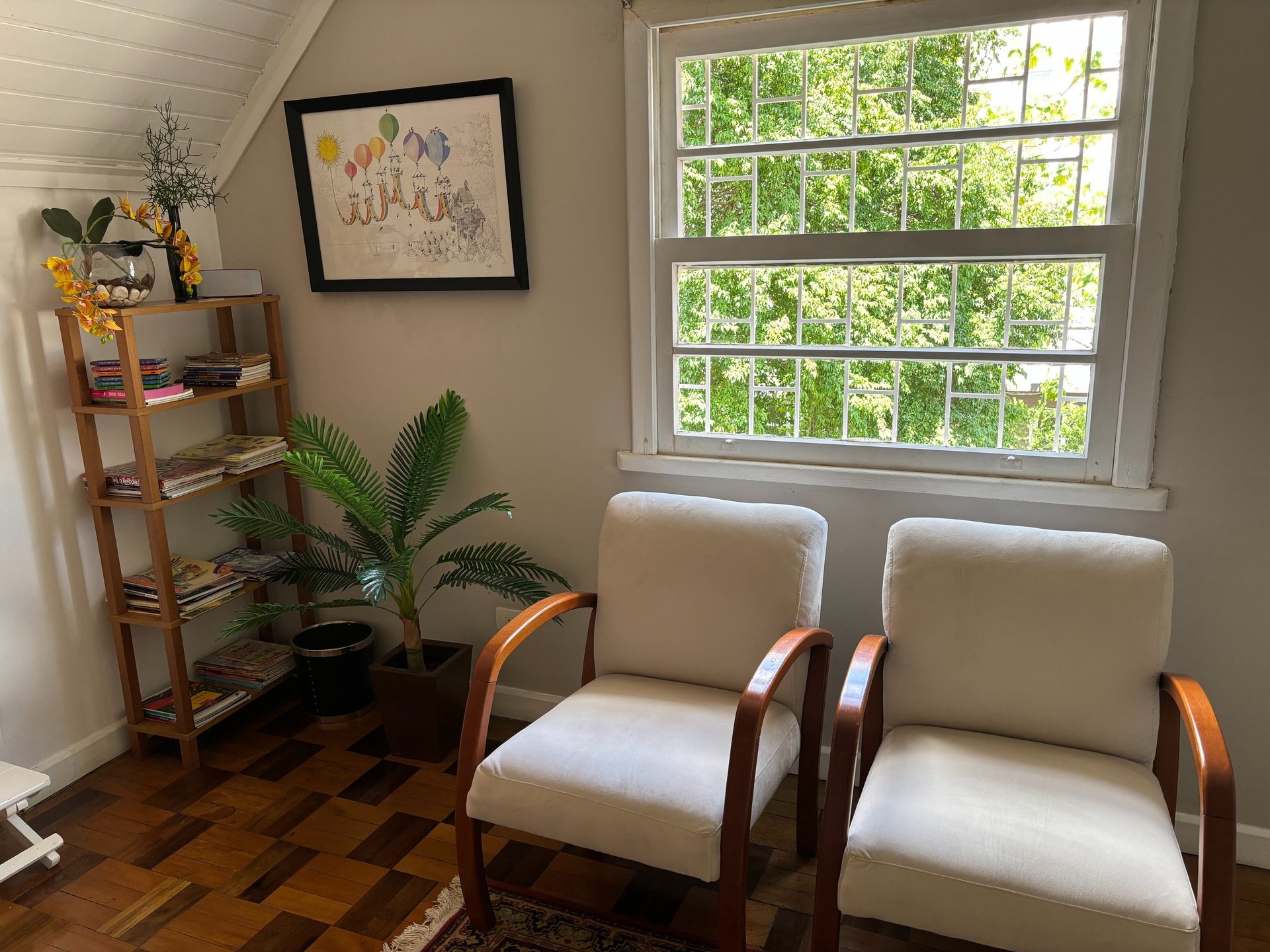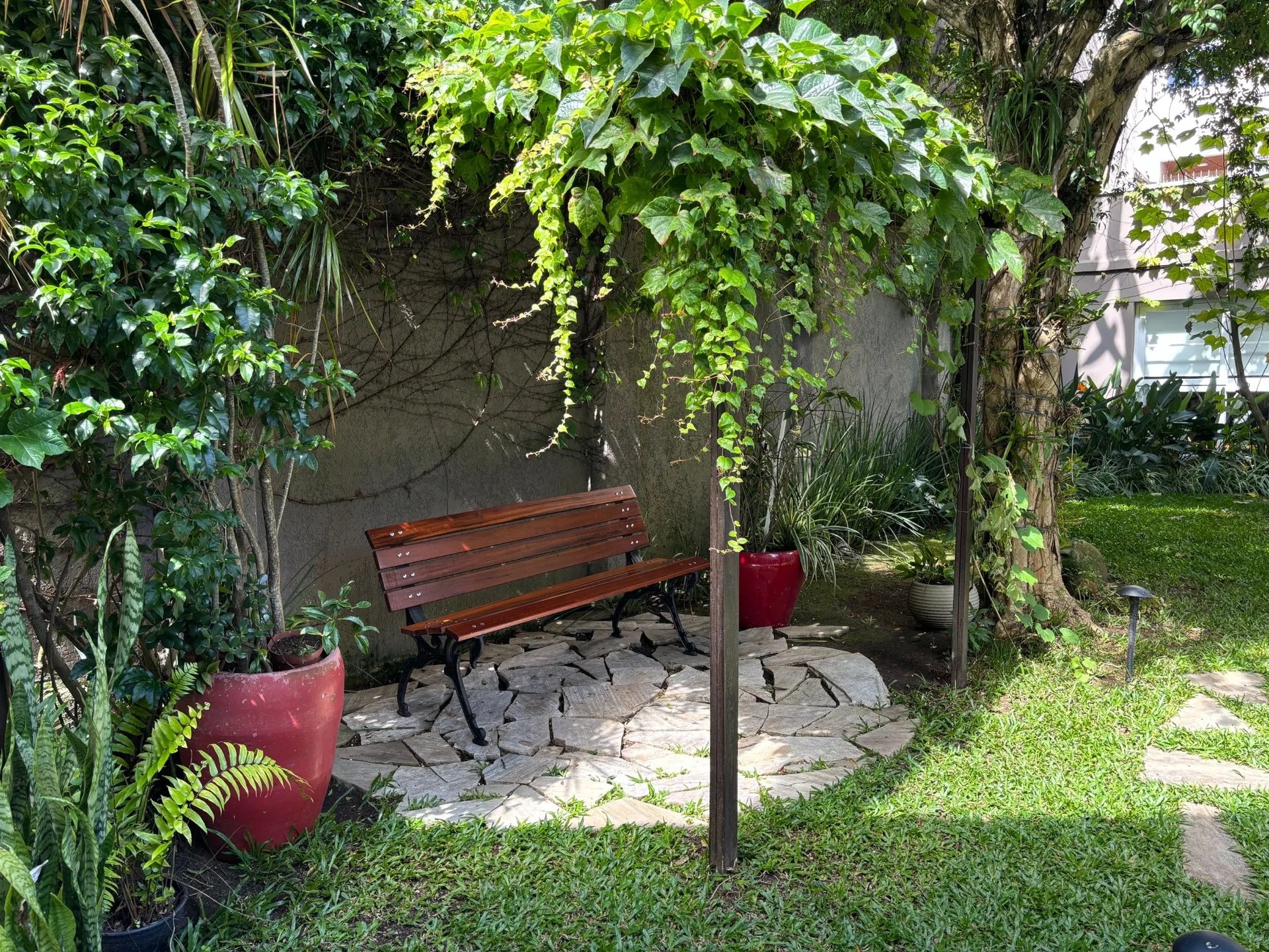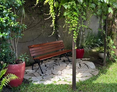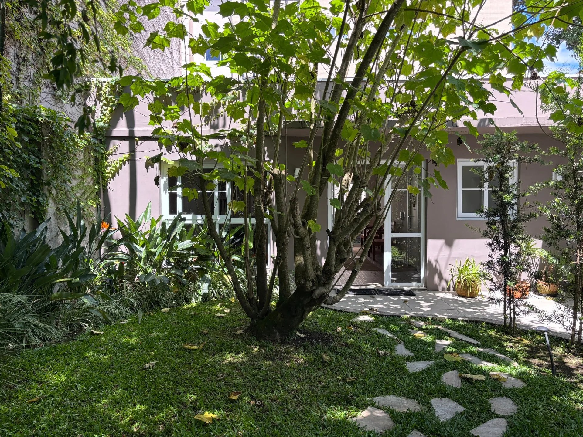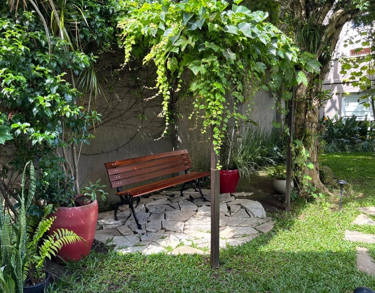 Localizada na região central de Curitiba, a poucos minutos do Shopping Mueller, a fachada discreta se integra ao ambiente urbano; no interior, um jardim cheio de cor e vida sustenta um ritmo mais calmo, favorecendo presença e cuidado.